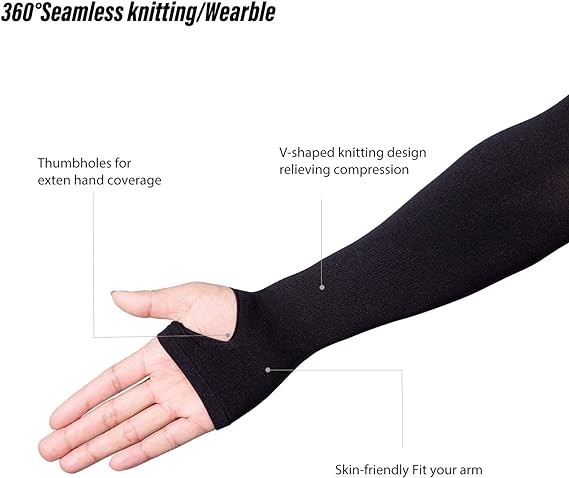 One size fits most - Each cool arm sleeve has a total length of 37cm/14.56" and with high elasticity, which fits all upper arm sizes between 8"-15". Unisex for both Men and Women.