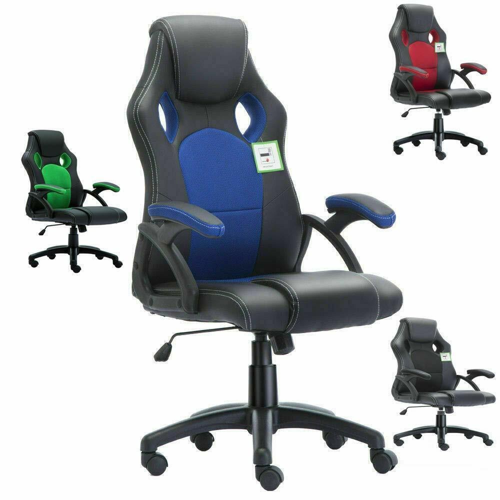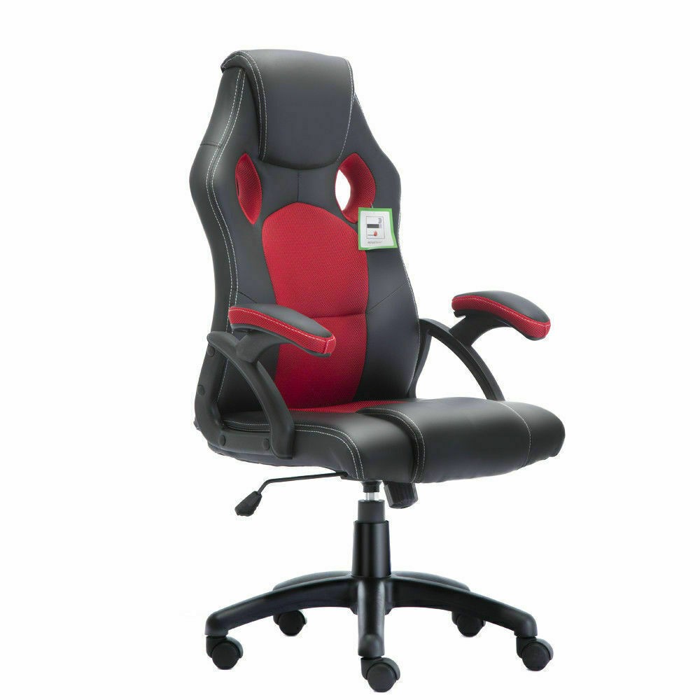 RACING GAMING OFFICE CHAIR EXECUTIVE LUMBAR SUPPORT SWIVEL PU LEATHER COMPUTER