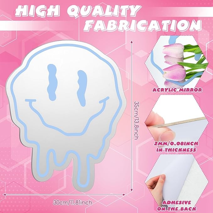 • Quality Material and Vibrant Color: made of lightweight acrylic, the twisted smile face preppy acrylic mirror meets your standard of durability given its capacity to resist wear and tear; Also, its intense blue color adds a lively touch to any room you choose to place it into, embodying a fusion of longevity and aesthetics
