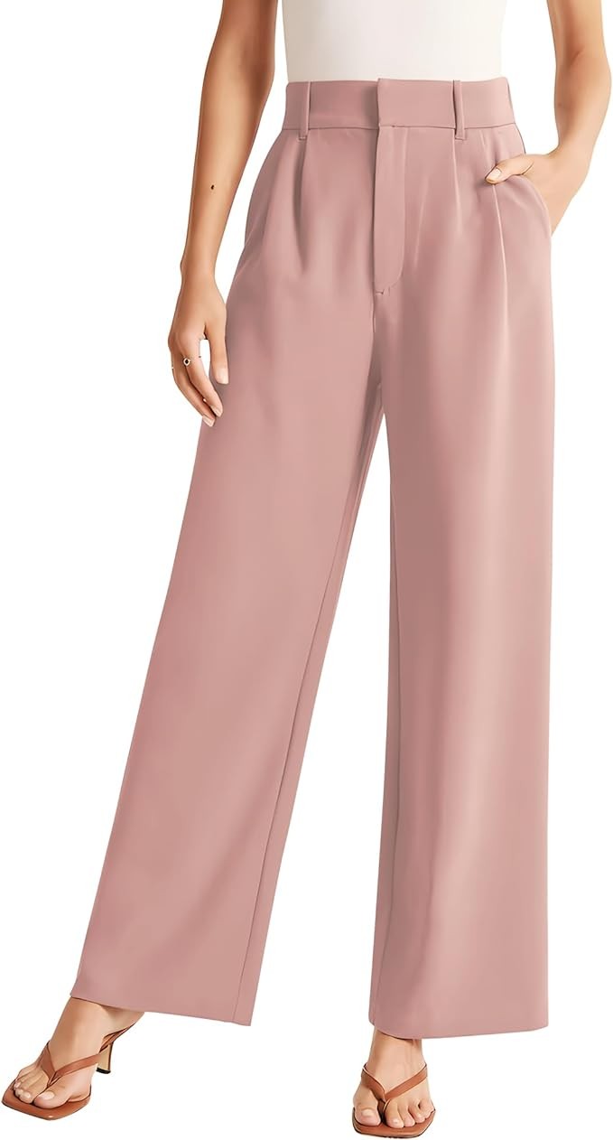 • 【Wide Leg & Elastic Waist】These Casual Pants Feature a Flattering Wide Leg Design and a Pleated Front with Side Slant Pockets. Zip Closure with Hidden Inner Button and Hook Ensures a Secure Fit. The Elastic Waistband in The Back is Designed to Accommodate Different Body Shapes.