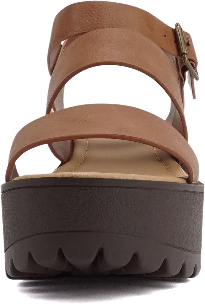 Soda ACCOUNT ~ Women Open Toe Two Bands Lug sole Fashion Block Heel Sandals with Adjustable Ankle Strap
