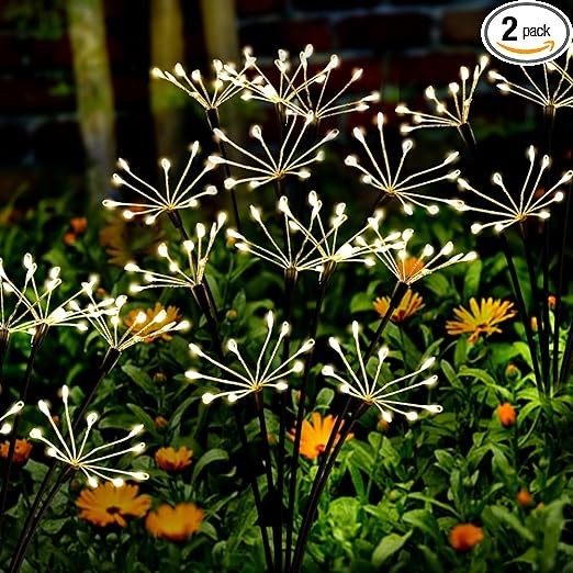 ✨【Newest Version Swaying Garden Lights】Each of our fireworks solar lights outdoor showcases six elegant branches with ten mouldable LED copper wires each, resembling fireworks blooming in the darkness of the night while still swaying by wind. It is outstanding at night on your yard, I would highly recommend for anyone wanting to add pizzazz to their gardens.