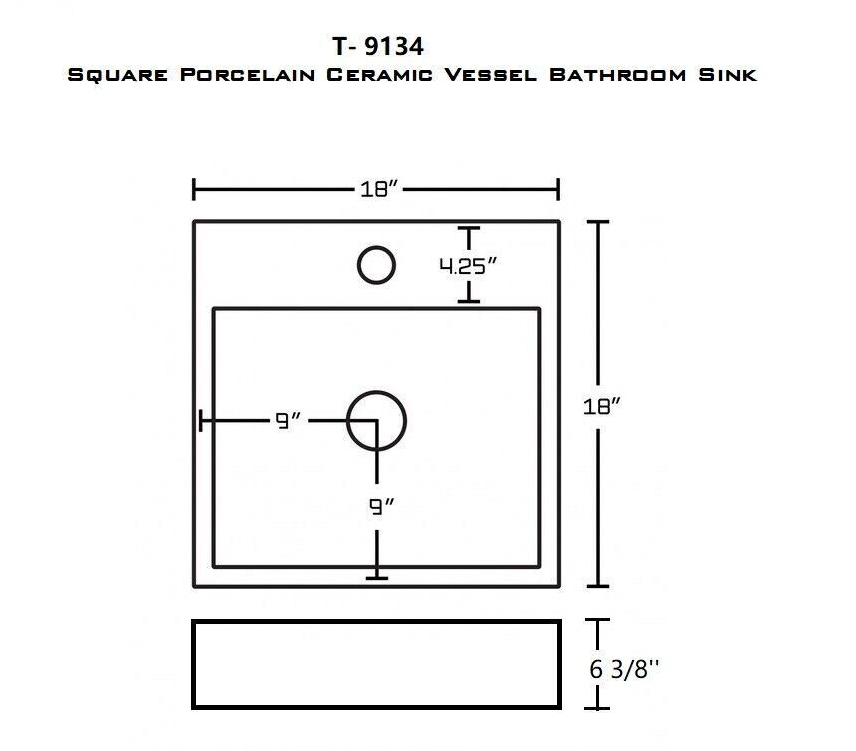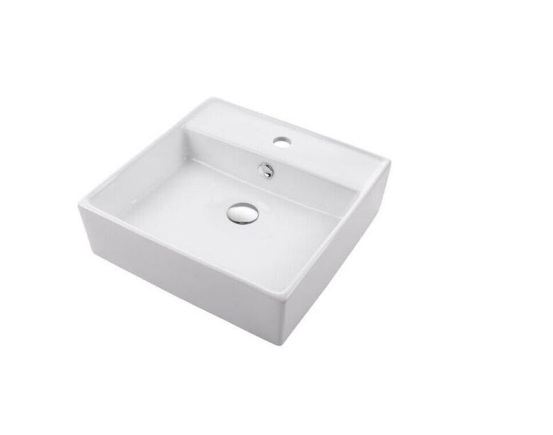 T-9134 White Square Vessel Porcelain Ceramic Bathroom Sink with Overflow