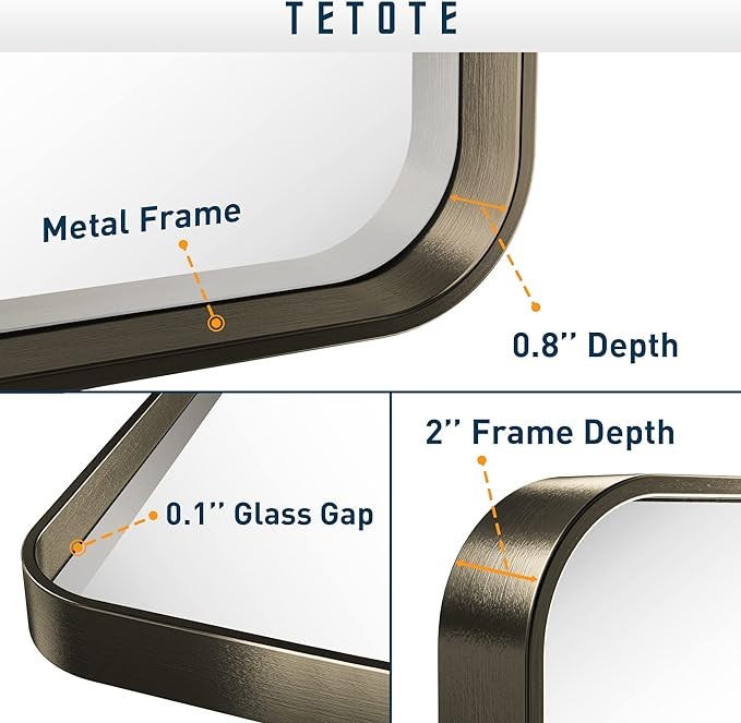 ✨【Practical and decorative framed mirror】TETOTE's 22 x 30 inch bathroom wall mirror is made of HD glass and premium brushed bronze metal frame. Rectangle shape with round corner of the framed mirror features the modern style. Meets the decor needs to industry, rustic and modern style of bathroom, bedroom vanity, entryway, farmhouse, hotel or salon
