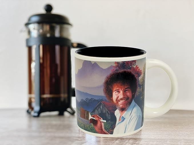 • When the mug is cold, the image of Bob Ross reminds you to be calm and find time in your life to create.