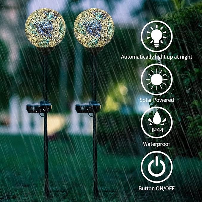 【Quality Assurance】2*Solar Powered Mosaic Ball Light. If you have any questions about solar lights, please contact us. and we will actively solve your problem