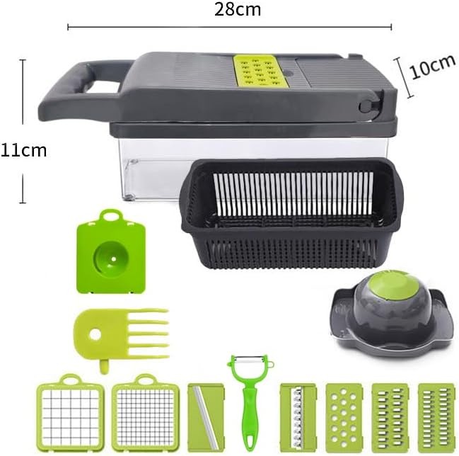 Vegetable Chopper,14 in 1 Multifunctional Food Chopper Pro Onion Mincer Kitchen Veggie Gadgets Slicer Dicer Cutter With 8 Blades & Strainer Basket,Carrot Potato Egg Slicer Cheese Grater With Container