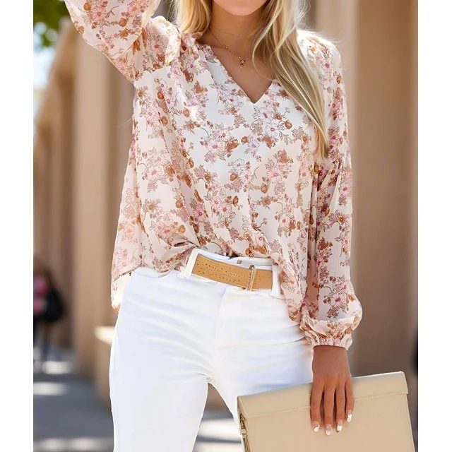Fashion Boho Floral Shirt for Women Summer Casual. Sexy V neckline, long sleeve top for women,Casual loose fit womens tops.