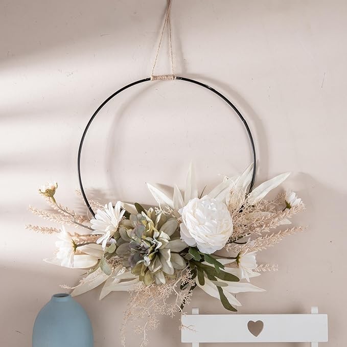 • ?【Superior Quality】: These beautiful floral hoop wreaths are made from premium materials that ensure their longevity, so you can enjoy their beauty for a long time to come. Multiple material are beautifully arranged to provide a romantic look.