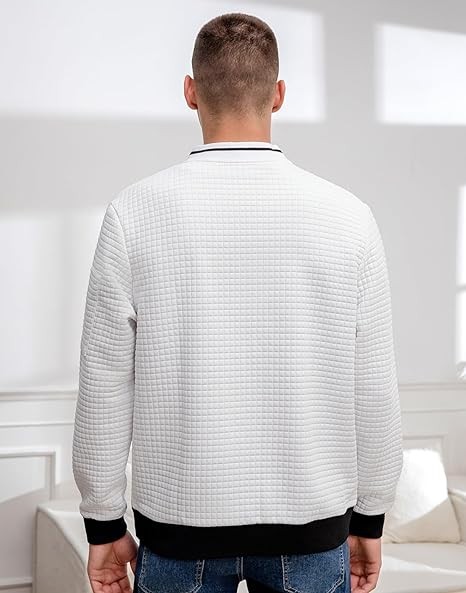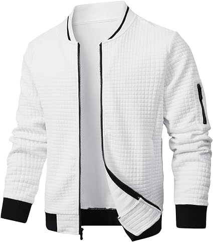 【STYLISH DESIGN】: Mens Casual Jacket designed with a full zip, ribbed hem and cuffs, left arm with decorative zipper and 2 side pockets on the front. Lightweight Jackets featured with 3D waffle pattern quilted design, more stylish and stereoscopic.