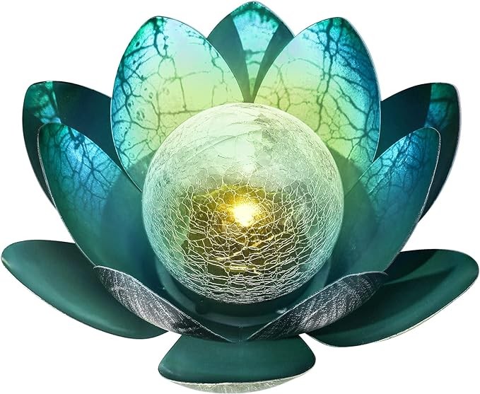 WNP Solar Lotus Flower Light Outdoor Decorations,Solar Outdoor Lights Decorative,Waterproof Glass Solar Powered Ball Decor Light for Outside with Metal Petal for Tabletop,Walkway Yard