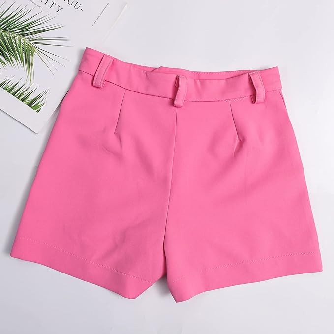Women High Waist Shorts Wide Leg Tailored Shorts Solid Zip Fly Work Office Shorts with Pocket