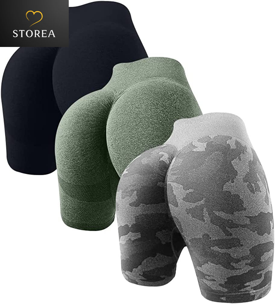Women'S 3 Piece Butt Lifting Yoga Shorts Workout High Waist Tummy Control