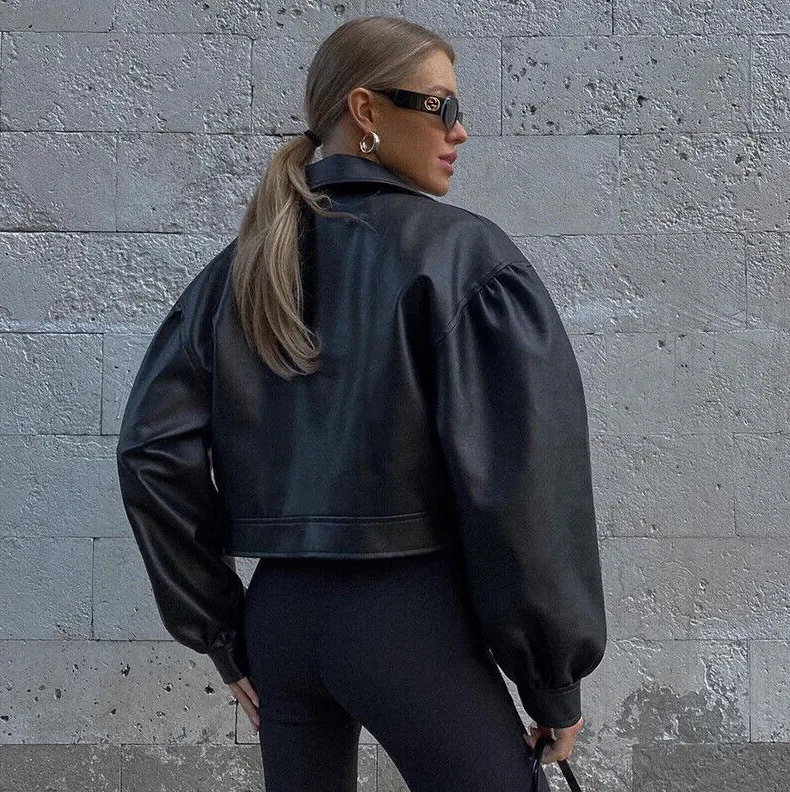 Womens Black Moto Style Genuine Leather Handmade Motorcycle Slimfit Biker Jacket