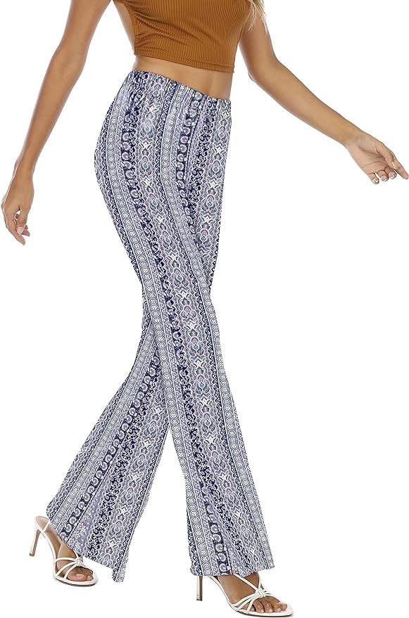 WSPLYSPJY Women's Print Stretch Bell Bottom Flare Palazzo Pants Trousers