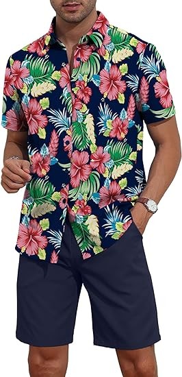 HAWAIIAN BEACH FLOWER STYLE: This classic casual summer flower hawaiian short set provide kinds off tropical floral print shirt and solid color shorts, the combination of rich colors and fashionable printed will not let you down, colorful vibrant prints always attract people's eye.