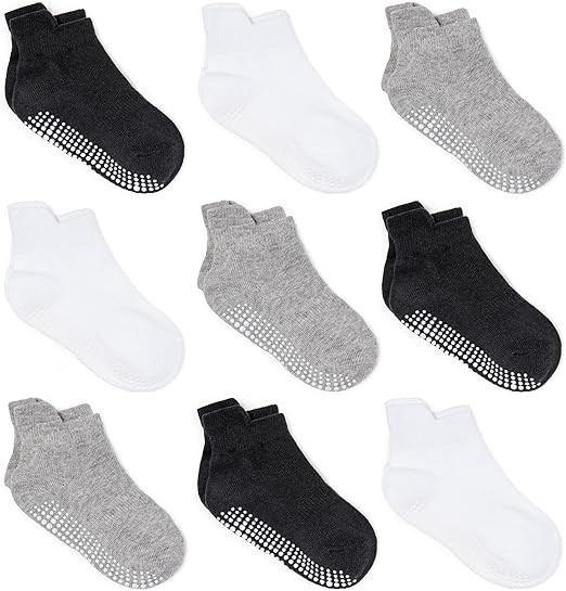 Zaples Baby Non Slip Grip Ankle Socks with Non Skid Soles for Infants Toddlers Kids Boys Girls