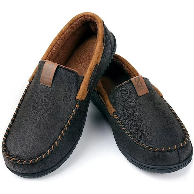 Zizor Men's Microsuede Moccasin Slippers with Comfy Memory Foam, Closed Back House Shoes Indoor Outdoor